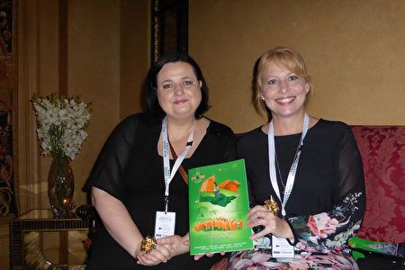 ![]() 圖8:三月二十四日晚,澳洲議會議員雷切爾﹒卡林 - 詹金斯(Rachel Carling-Jenkin)博士(右)和助手觀賞了神韻在澳洲的首場演出。 |