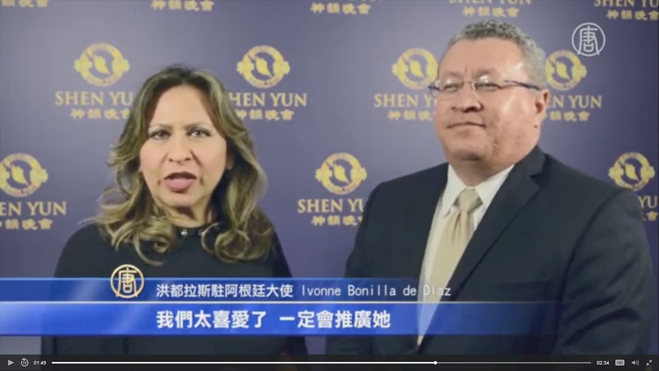 洪都拉斯駐阿根廷大使伊馮﹒邦尼婭﹒戴迪亞(Ivonne Bonilla de Díaz)女士觀看演出後表示,她希望能把神韻帶去洪都拉斯:「我們太喜愛了,一定會推廣她,作為文化和藝術之間的橋樑,我們將為此服務,以便有一天將他們帶到洪都拉斯」。