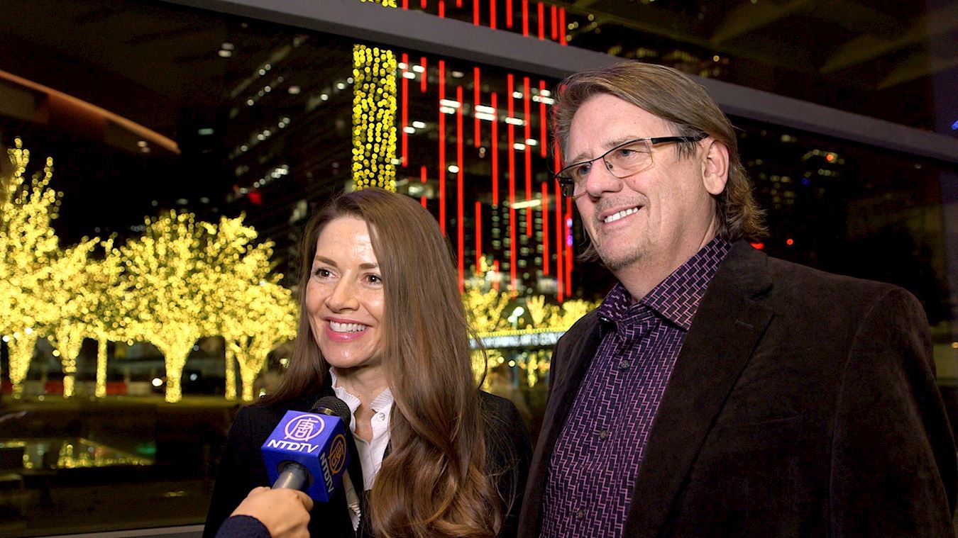 ![]() 圖13:美國生物製藥龍頭默克公司的副總裁雅各布﹒泰格倫(Jacob Tellgren)先生和夫人米婭(Mia Tellgren)表示,他們非常喜歡神韻演出。 |