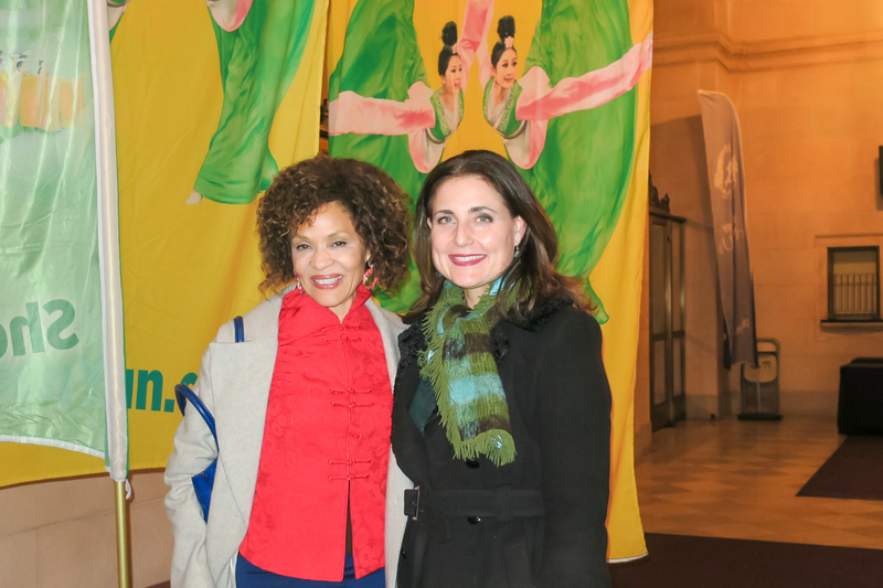 ![]() 圖7:CBS節目主持人兼製作人黛安﹒瓦格納(Diane Wagner)女士(右)和Brenda Wade博士都非常喜愛神韻,特別被神韻的精神內涵所打動。 |