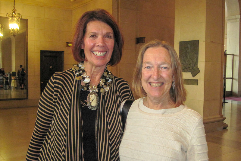 ![]() 圖8:公司執行長傑奎琳﹒喬伊(Jacqueline Joy)(左)及同仁克里斯蒂娜﹒金(Christina Golden)觀看了一月六日神韻國際藝術團在舊金山歌劇院的第六場演出。她們說:「我愛神韻!」 |