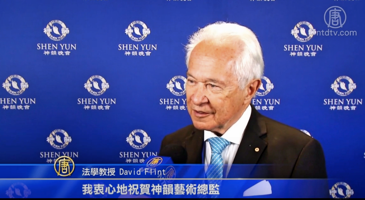二零一九年三月六日晚,國際著名法律學家大衛•弗林特(David Flint)觀賞了神韻世界藝術團在悉尼的首演,演出表達的信息在他心裏引起共鳴。他說:「我要說這是一個偉大的製作,給我留下極深的印象。我衷心地祝賀神韻藝術總監獲得如此超凡的成就。」