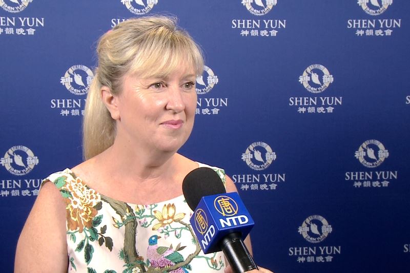 ![]() 圖12:三月十日晚,作曲家、國家廣播電台播音員凱莉亞當斯﹒科利爾(Kylie Adams-Collier)觀看演出後表示非常喜歡神韻演出中的傳統故事。 |