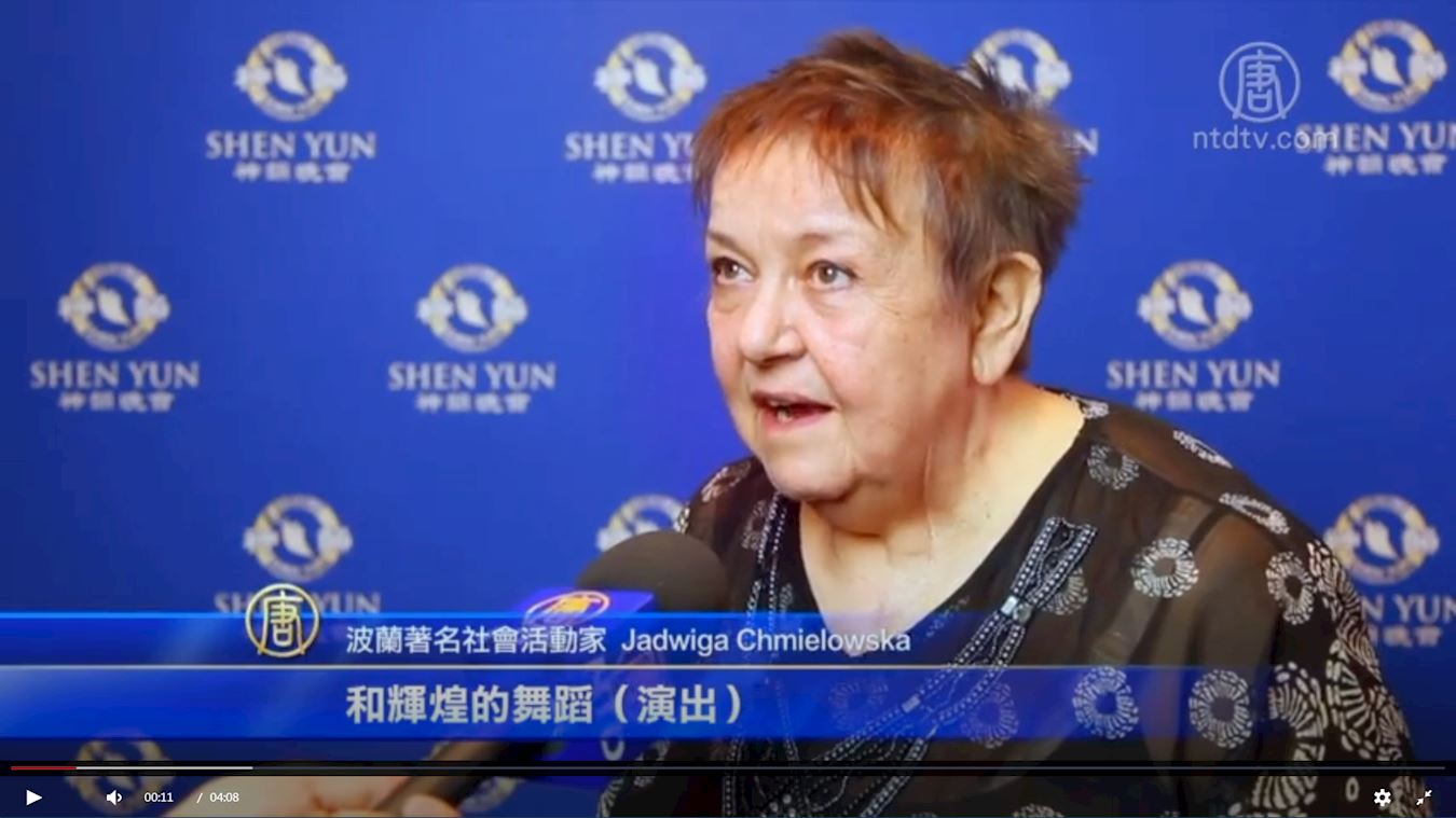 居住在波蘭的雅德維加﹒奇米洛夫斯卡(Jadwiga Chmielowska)女士專程到柏林德意志歌劇院的觀看神韻。奇米洛夫斯卡女士被神韻展現的博大精深的神傳文化所感動:「演出帶著我們遊覽幾千年或幾百年前中國的不同朝代,一直到現代。我們看到多麼善良而忠誠的人,法輪大法修煉者卻由於信仰而遭受迫害。」