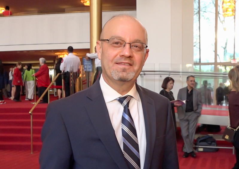 ![]() 圖11:二零一九年四月二十一日晚,黎巴嫩駐美大使館的財務官員薩姆﹒哈姆丹(Sam Hamdan)觀賞了神韻北美藝術團在華府肯尼迪藝術中心的演出。他說:「我非常感動,演出的美麗觸動內心。」 |