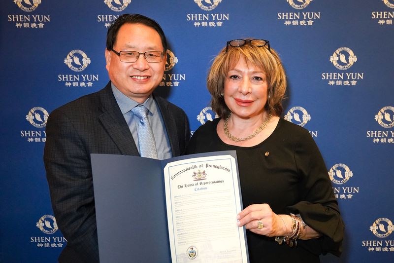 二零二零年三月一日下午,神韻環球藝術團在費城瑪麗安劇院舉行第二十場演出,賓州眾議員瑪麗亞﹒多納圖奇(Maria Donatucci)到劇院為神韻費城主辦方頒發褒獎,表彰神韻藝術團用神傳文化和藝術為賓州居民帶來福祉和積極影響。