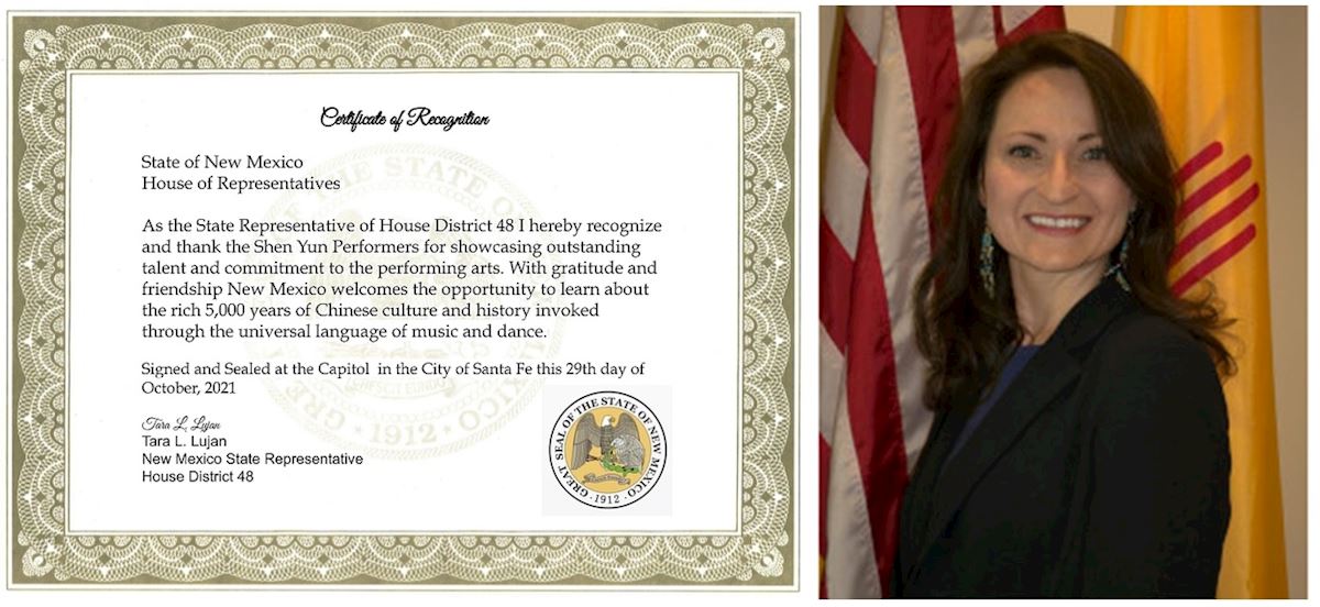 十月二十九日,新墨西哥州民主黨眾議員塔拉・魯揚(Tara L.Lujan)女士簽發褒獎令,感謝神韻為該州民眾帶來了解璀璨中華傳統文化的機會。她寫道: