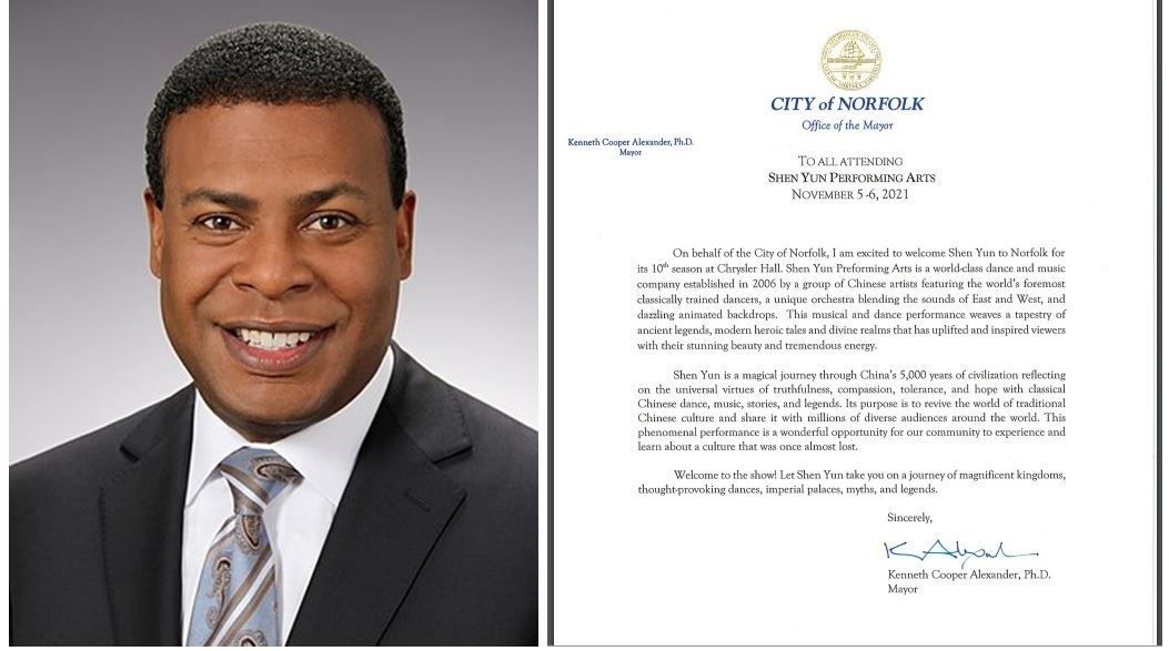 二零二一年十一月五日至六日,美國神韻藝術團第十次蒞臨弗吉尼亞州諾福克市(City of Norfolk)。諾福克市長肯尼斯・庫珀・亞歷山大博士(Dr Kenneth Cooper Alexander)在演出前發來賀信,恭賀神韻藝術團的到來。