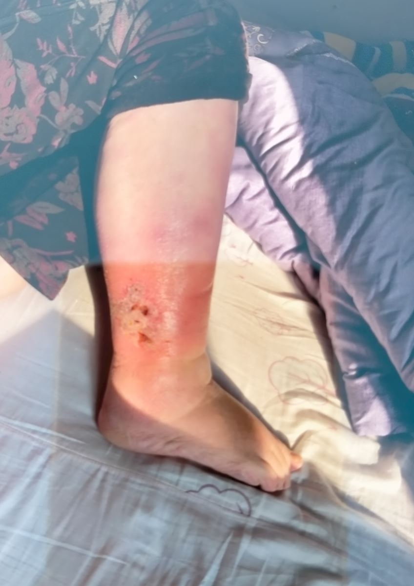 回來後不長時間,腿上就開始紅腫潰爛,到現在才逐漸好轉。