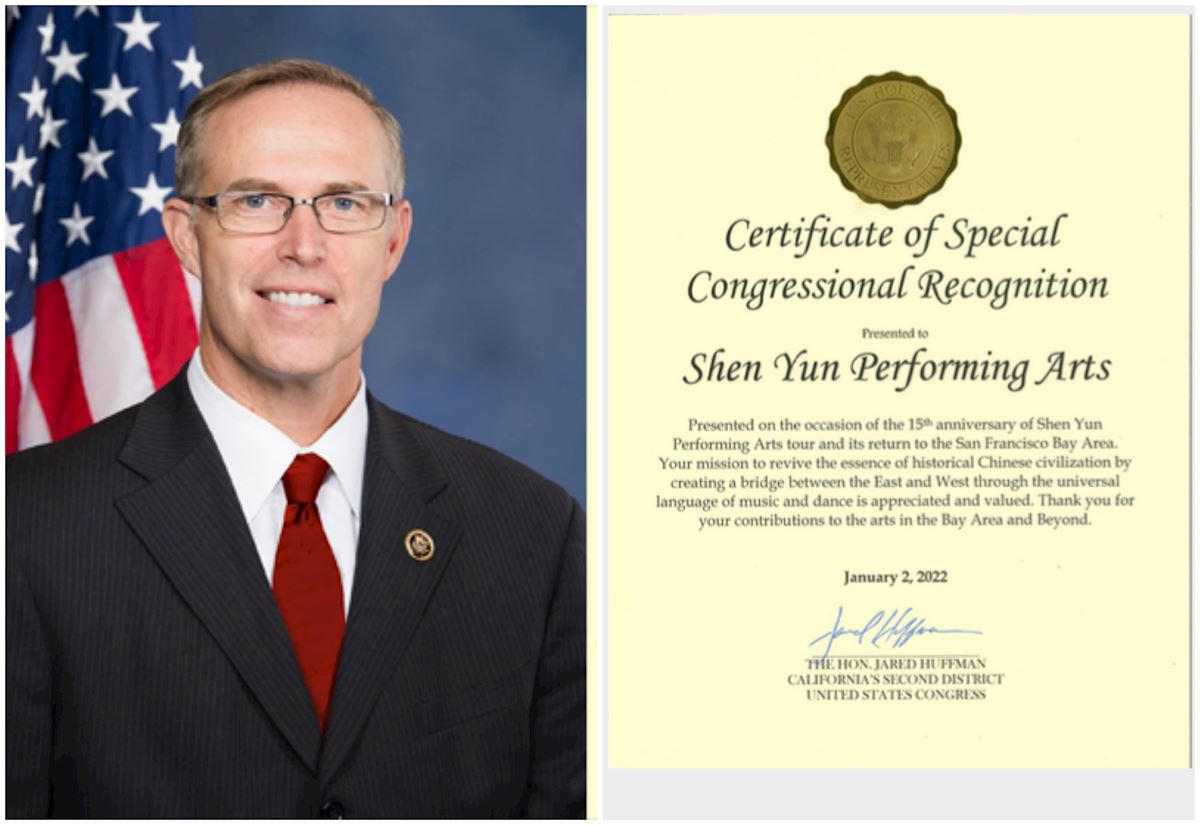 加州國會眾議員賈裏德﹒赫夫曼在褒獎信中說:「值此神韻藝術團巡迴演出十五週年、重返舊金山灣區之際,特頒發褒獎。神韻的宗旨是復興中華傳統文化之精髓,通過廣受歡迎的音樂和舞蹈架起東西方之間的橋樑。感謝你們對灣區和其它地區藝術的貢獻。」