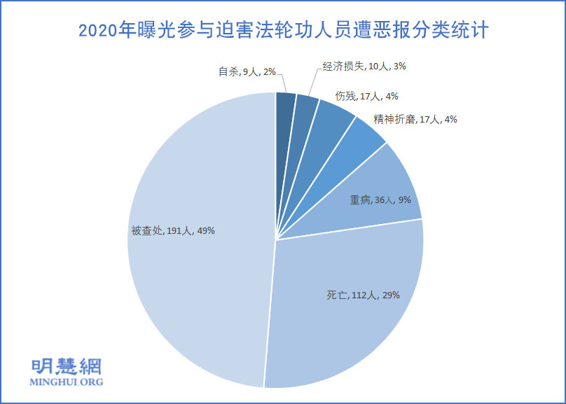 ![]() 圖2:2020年曝光參與迫害法輪功人員遭惡報分類統計 |