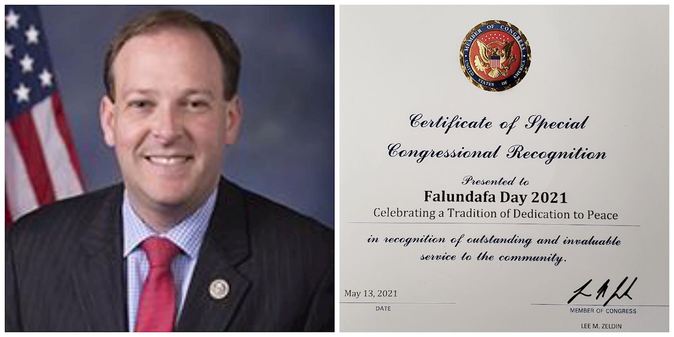 ![]() 圖2:紐約州第一選區國會議員李﹒米澤爾丁(Lee m. Zeldin)發來榮譽證書褒獎「法輪大法日」,讚賞法輪功學員二十一年一直堅守的平和理念。 |
