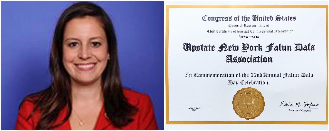 ![]() 圖7:剛剛勝選為美國國會眾議院共和黨大會主席的紐約第二十一選區女議員埃莉斯﹒斯特法尼克(Elise Stefanik)向紐約上州法輪大法學會發來榮譽證書,祝賀第二十二屆大法日的慶祝。 |