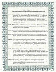 米德爾敦市(City of Middletown)嘉獎世界法輪大法日