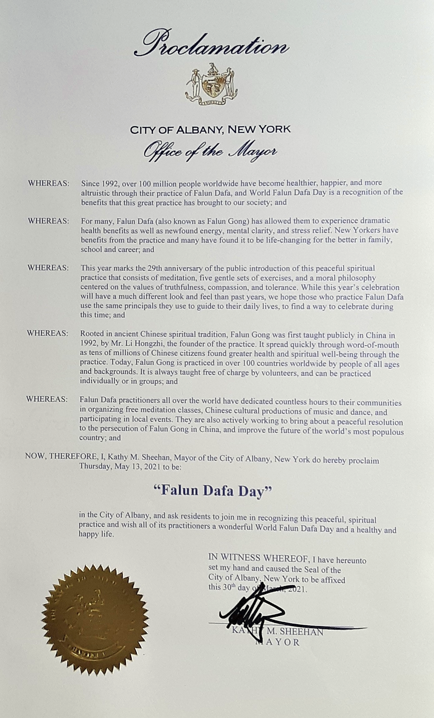 鑑此,我,施翰(Kathy M. Sheehan),紐約州奧伯尼市市長宣布二零二一年五月為奧伯尼市