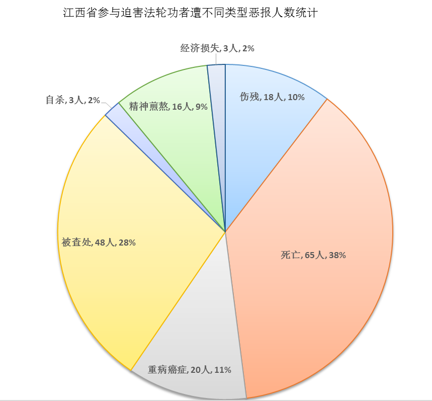 ![]() 圖2:中共迫害法輪功21年,江西省參與迫害法輪功者遭不同類型惡報人數統計 |