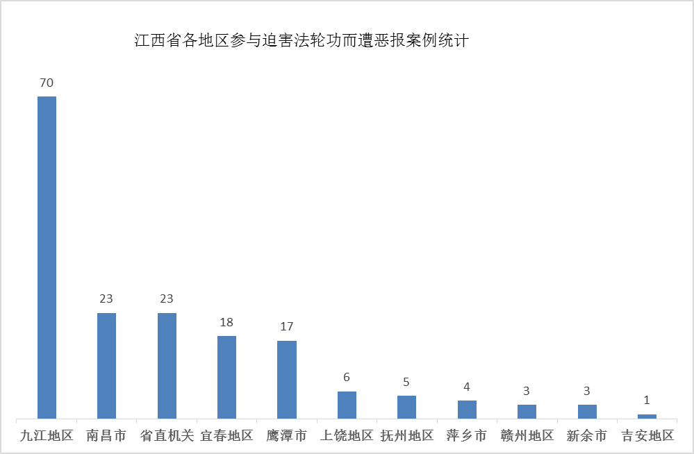![]() 圖3:中共迫害法輪功21年,江西省各地參與迫害中遭惡報人數統計 |