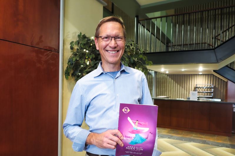 ![]() 圖6:二零二一年八月一日下午,視覺藝術家邁克爾・格雷(Michael Gray)觀看了神韻巡迴藝術團在科羅拉多州拉夫蘭市的演出。他說:「我很高興能來觀賞神韻。」 |