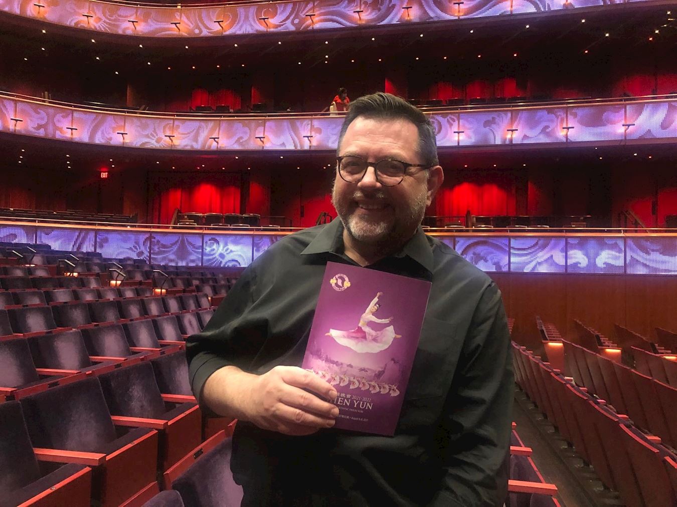 ![]() 圖3:二零二一年八月六日晚,資深舞台藝術總監蒂姆。赫奇佩斯(Tim Hedgepeth)觀賞了神韻世界藝術團在聖安東尼奧市的演出。 |
