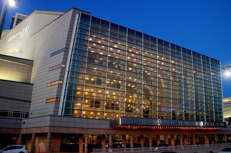 ![]() 圖7:二零二二年一月四日至九日,神韻北美藝術團在美國佛州邁阿密市艾君愛詩演藝中心(Adrienne Arsht Center for the Performing Arts)演出七場,觀眾讚歎,演出「史詩般」的恢弘,讓西方人了解了真正的中國。圖為艾君愛詩演藝中心外景。(大紀元) |