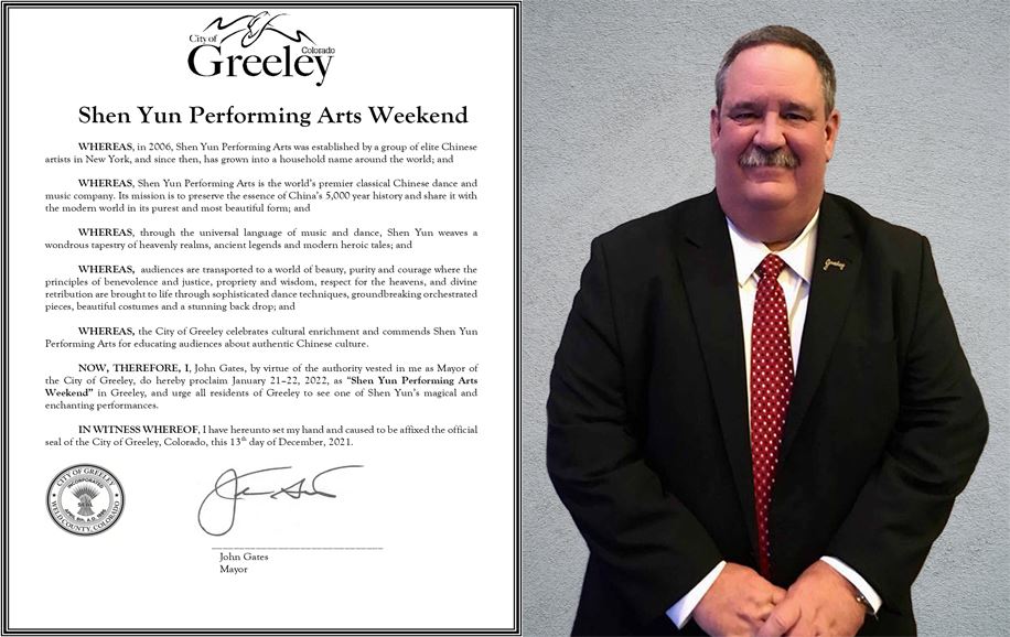二零二二年一月二十一日和二十二日,神韻紐約藝術團蒞臨美國科羅拉多州格裏利蒙福特音樂廳上演二場演出。演出前,該市市長約翰﹒蓋茨(John Gates)頒發褒獎歡迎神韻到來,鼓勵所有市民前往觀賞神韻演出。