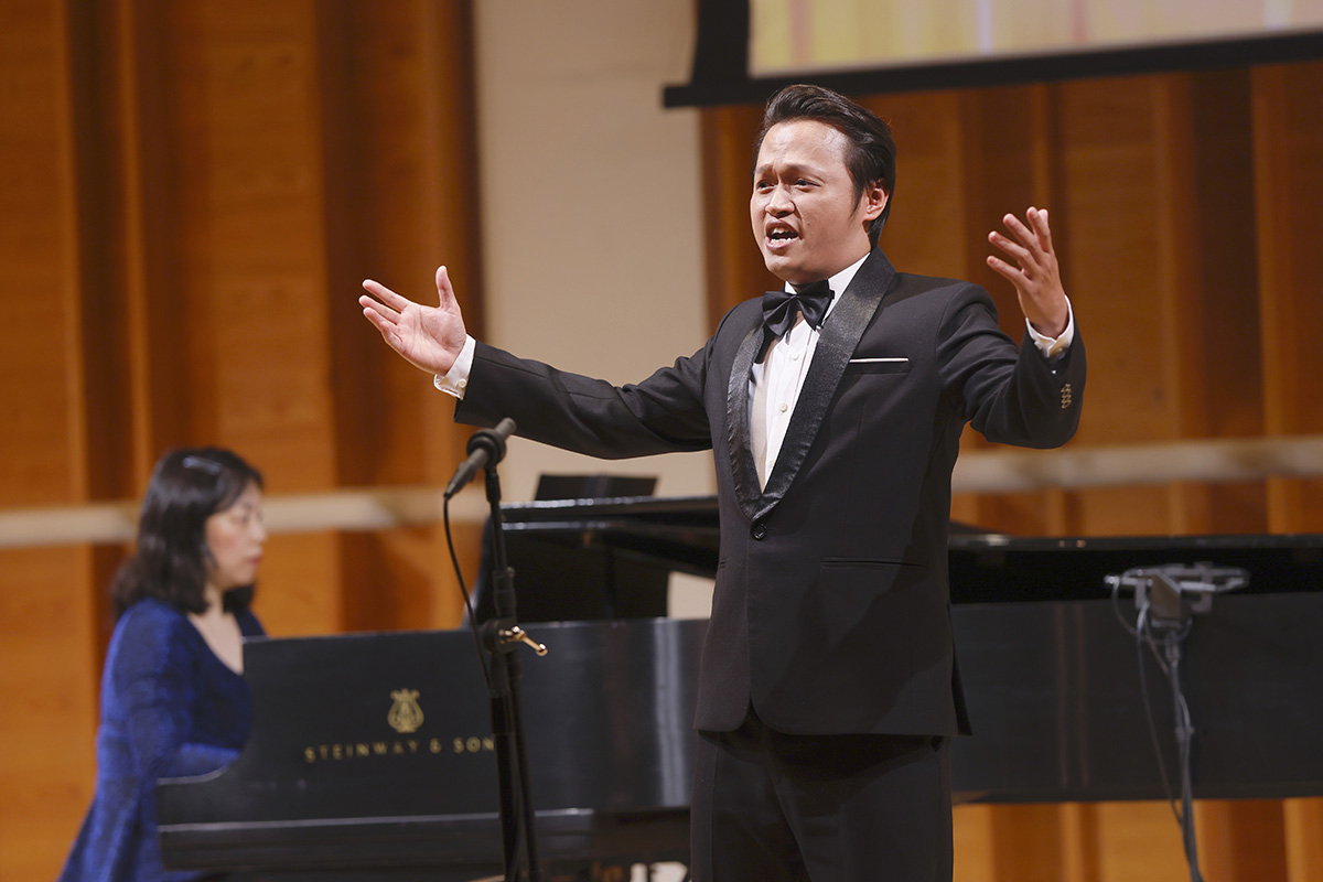 圖2:榮獲大賽男聲組銀獎、來自越南的選手東林在演唱《心中的歌》。(大紀元)