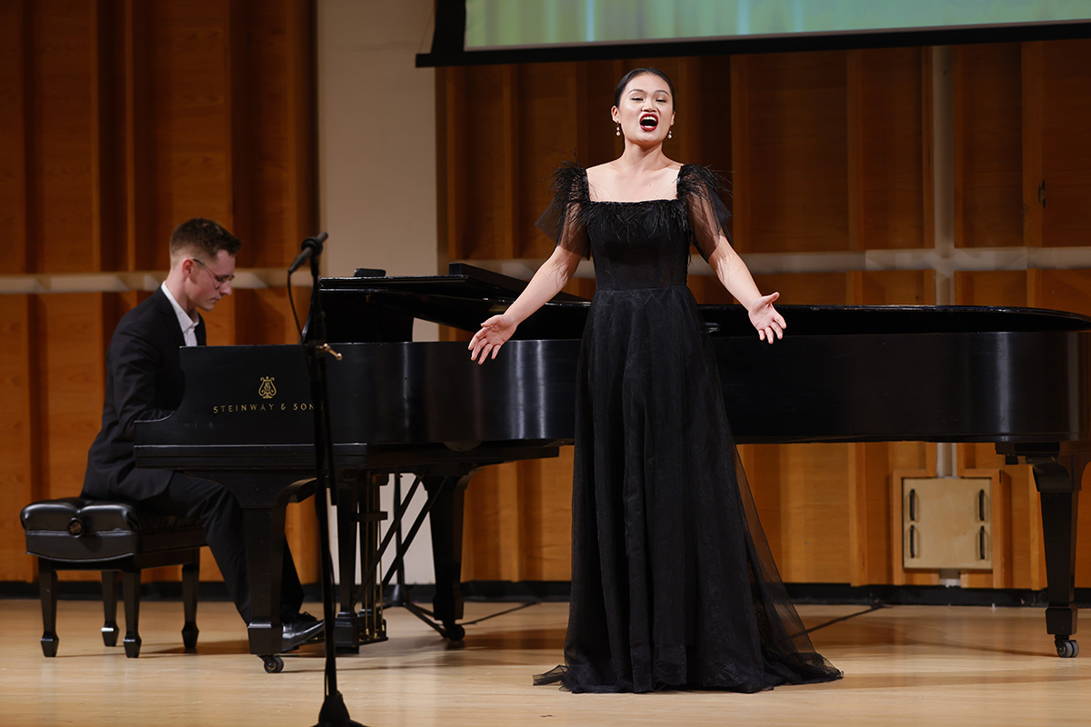 圖4:來自美國紐約的選手、女聲組銅獎之一,Rachael Bastick在演唱普契尼歌劇《波希米亞人》中的曲目「當我走在大街上」。(大紀元)