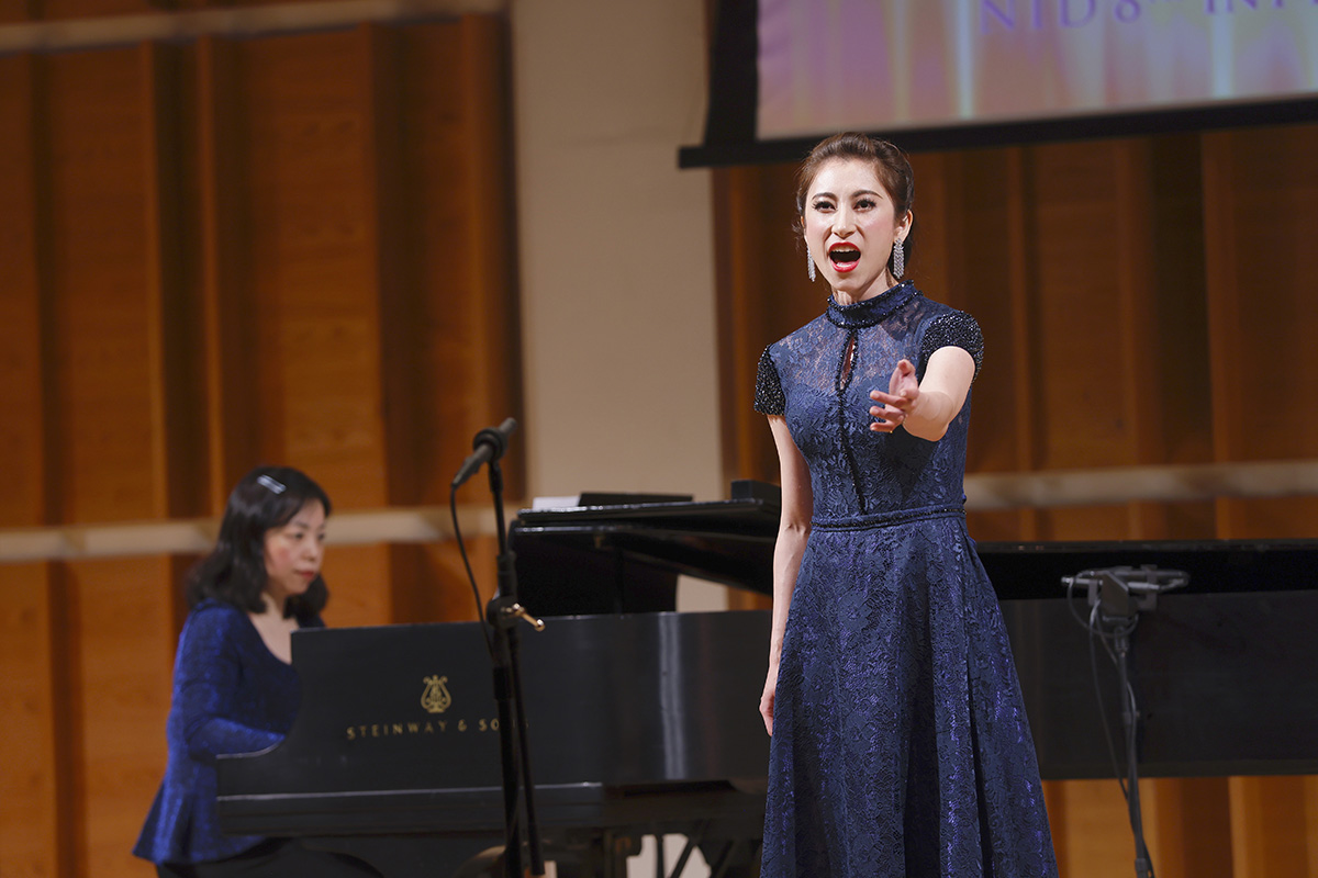 圖3:來自加拿大的選手、女聲組銀獎獲得者徐晶晶在演唱《幽蘭操》。(大紀元)
