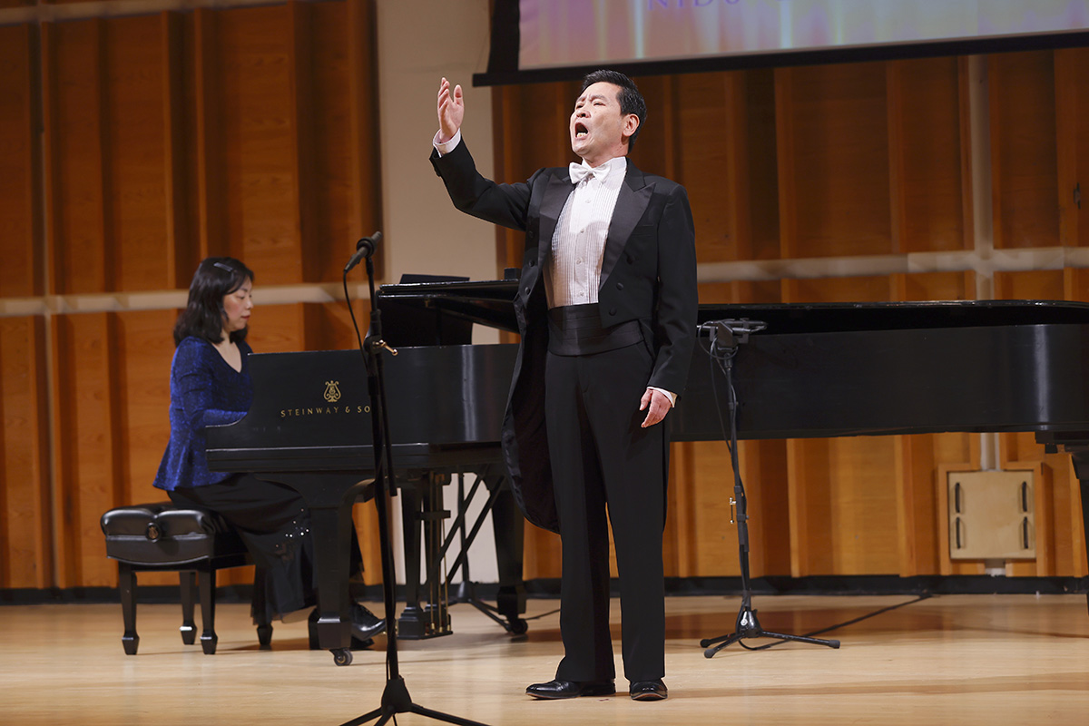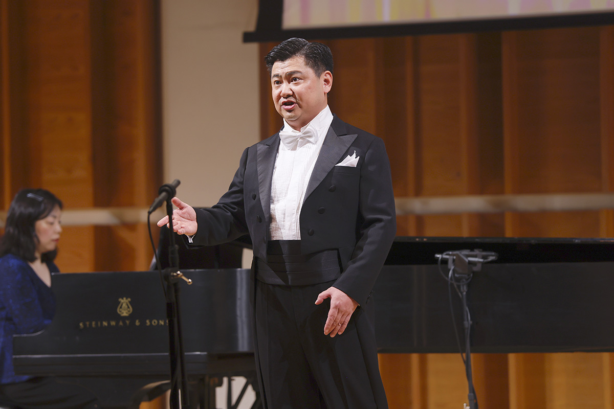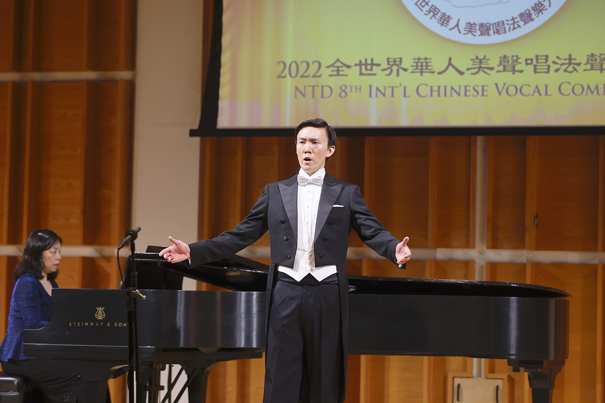 圖6:來自美國紐約的選手、男聲組優秀獎獲得著之一,黃鵬在演唱《幽蘭操》。(大紀元)