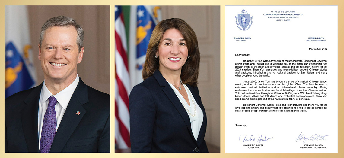 麻州州長和副州長在賀函中表示:「自二零零六年以來,神韻通過中國古典舞、音樂和藝術,將歡樂帶給全球觀眾。神韻已成為一個著名的文化機構和國際現象,為觀眾提供了發現中華古文化的豐富遺產的機會。這文化在中國繁榮興盛了五千年。通過令人驚嘆的展現故事的舞蹈、民族民間舞,以及現場樂團伴奏,神韻已經成為我們州多元文化結構的一個組成部份。」