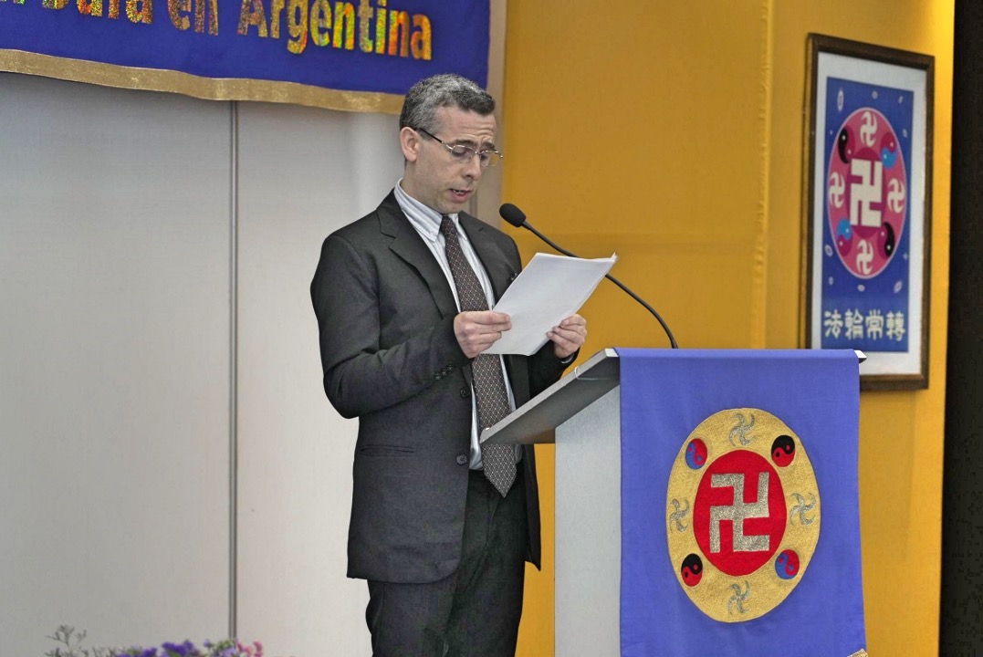 他還談到,自己沒有讀過書,看書他是一個字母一個字母的讀,然後是一個詞一個詞的讀,他用了很久才讀完《轉法輪》,但是每當他有問題時,翻開書,師父總是給他指出答案。他說他非常感謝師父,感謝《轉法輪》,讓他可以讀書了。