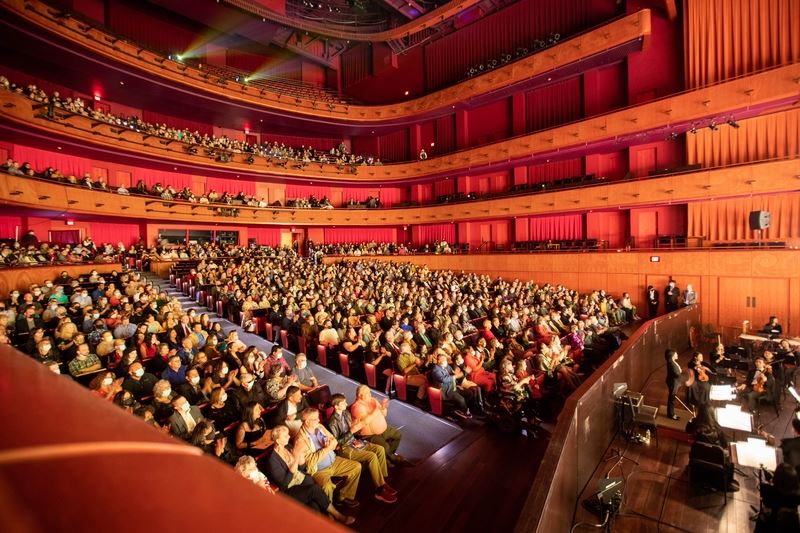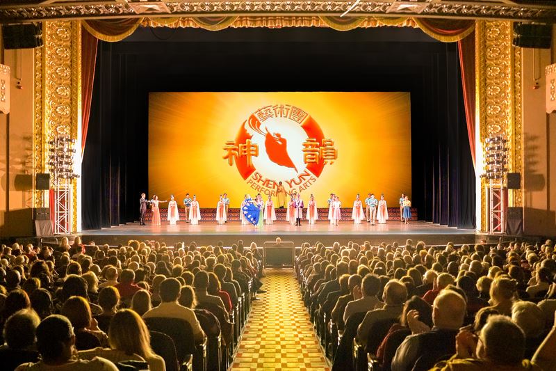![]() 圖4:二零二二年二月十八日至二十日,神韻新紀元藝術團在德州聖安東尼奧特賓表演藝術中心(Tobin Center for the Performing Arts)上演了五場演出,票房均爆滿。圖為二十日最後一場演出的謝幕照。(新唐人電視台) |