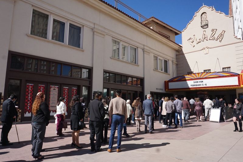 ![]() 圖5:二零二二年二月五日和六日,神韻北美藝術團在德克薩斯州艾爾帕索廣場劇院上演了三場演出;五日的二場演出票售罄,六日的演出是三週前增加的場次,票房已爆滿。圖為六日演出開演前,觀眾排隊進場。(大紀元) |
