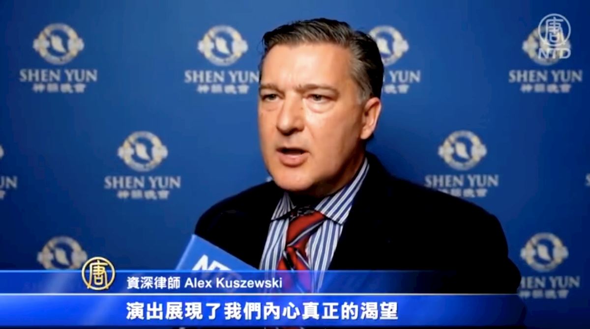 ![]() 圖12:資深律師庫捨夫斯基先生(Alex Kuszewski)表示神韻是震撼人心的演出,也使他的精神得到了提升。(新唐人電視截圖) |