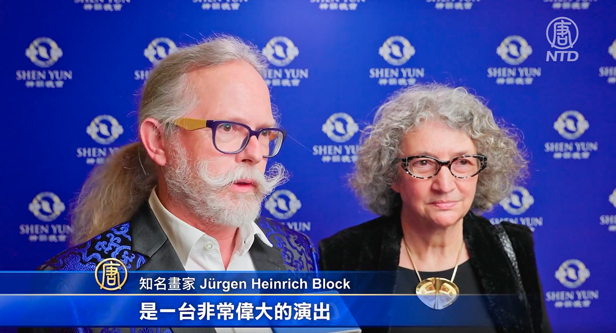 ![]() 圖7:二零二二年三月十二日晚,知名畫家尤爾根﹒海因裏希﹒布洛克(Jürgen Heinrich Block)和太太神韻在德國魯爾河畔米爾海姆的演出。他稱讚神韻是一場偉大的演出。(新唐人) |
