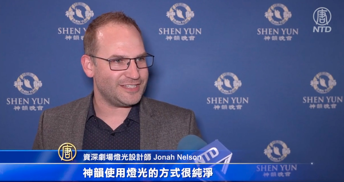 ![]() 圖9:資深劇場燈光設計師喬納﹒尼爾森(Jonah Nelson)對演出讚不絕口。(新唐人電視截圖) |