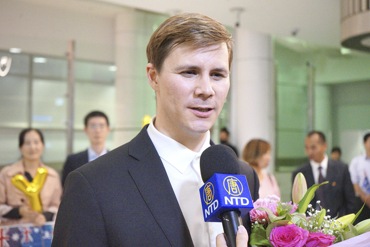 ![]() 圖5:神韻國際藝術團節目主持人唐韻在澳洲悉尼國際機場接受採訪。(大紀元) |