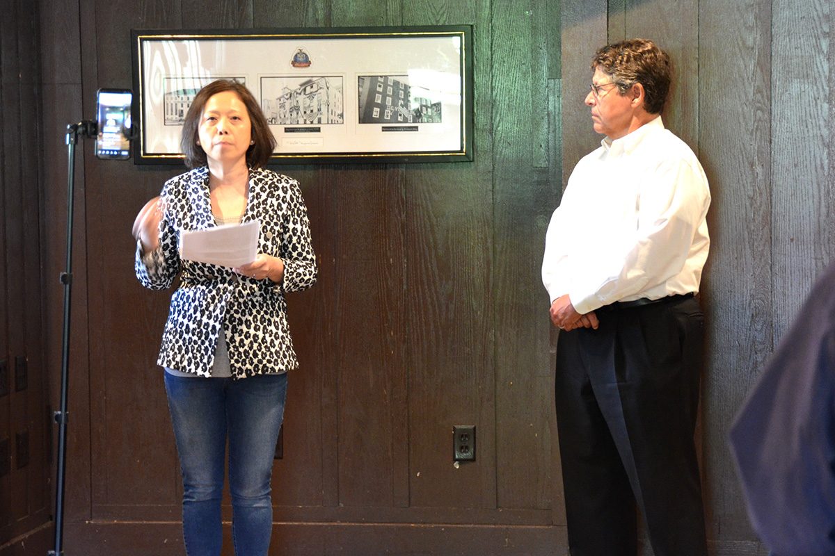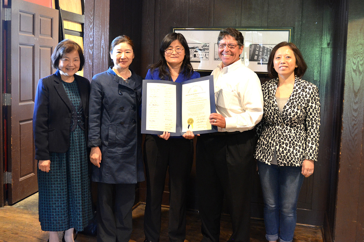 頒發褒獎後,法輪功學員劉女士向現場民眾介紹了修煉法輪功後自己和家人在身心上的巨大收穫:自己多年的各種疾病不治而癒;作為一家全球科技巨頭公司的高級技術負責人,她能夠從容面對每天的各種壓力;從小就修煉法輪功的女兒能夠以真、善、忍的標準要求自己,處理好學業和生活上的挑戰,在高四時她帶領校游泳隊取得了美東私校冠軍賽的冠軍,現在是一所名校的學生運動員,並加入了美國陸軍後備軍官訓練計劃。