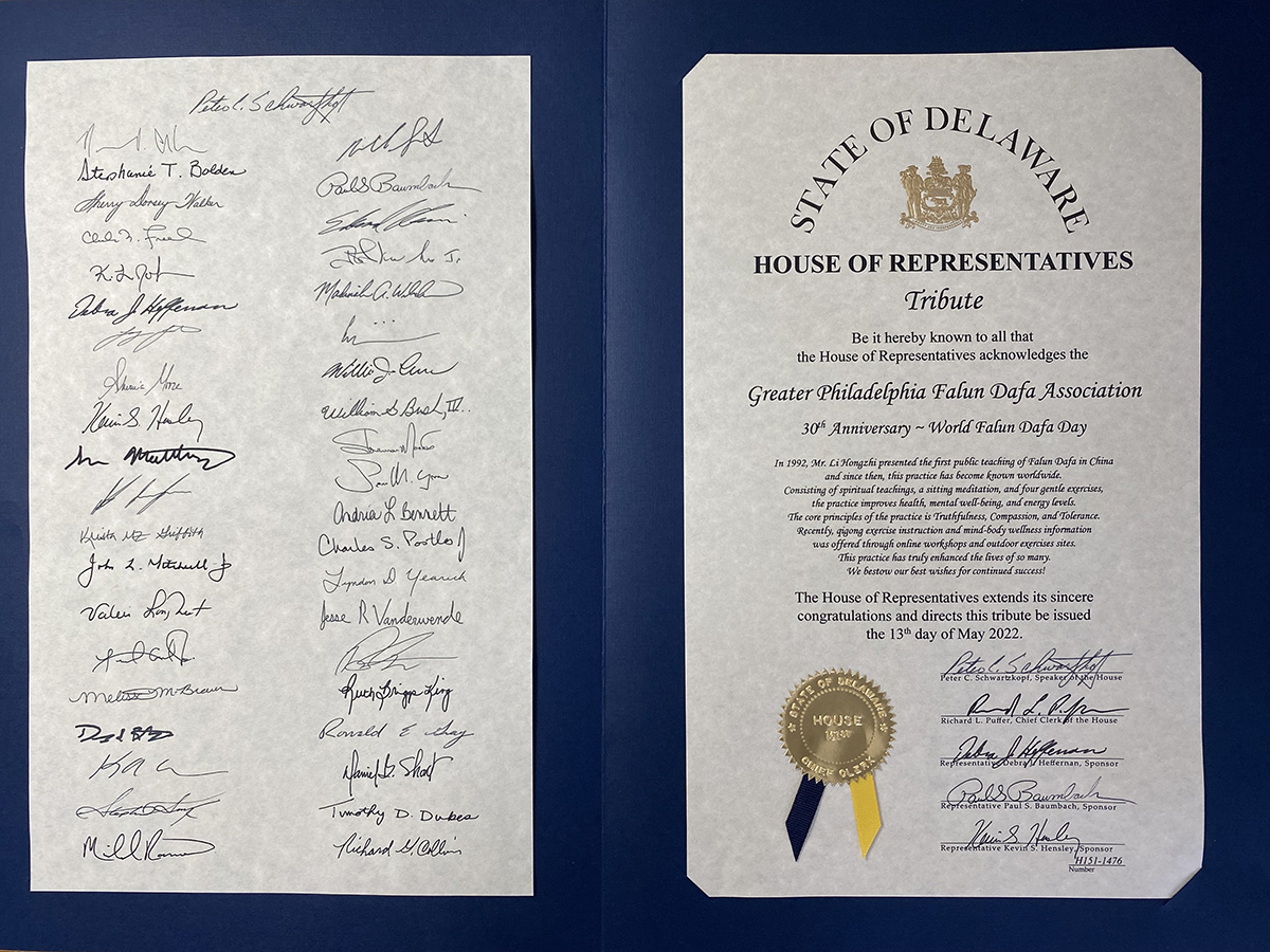 ![]() 圖3:德拉華州眾議院頒發的褒獎。 |