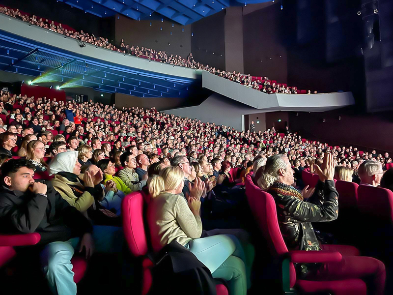 ![]() 圖2:二零二三年三月六日和七日,美國神韻環球藝術團在丹麥奧胡斯音樂廳(The Concert Hall Aarhus)上演了二場演出,均大爆滿。圖為三月六日,演出大爆滿盛況。(大紀元) |