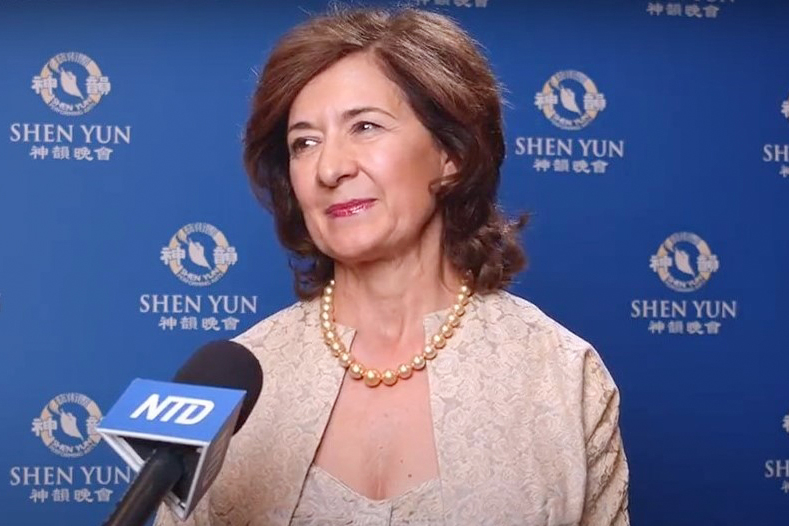 她說:「以神韻這樣非常有藝術性又才華橫溢的舞蹈展現五千年歷史的這種創意,同時傳達了非常、非常重要的信息,關於關愛、慈悲和信仰的信息,所有這些我都覺得意義非凡。」