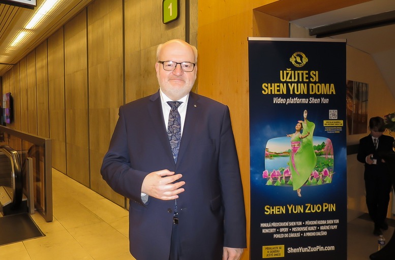 ![]() 圖9:二零二三年三月十日,捷克前文化部長、榮譽大使丹尼爾﹒赫爾曼(Daniel Herman)在捷克布拉格會議中心(Prague Congress Center)觀看了美國神韻環球藝術團的演出。(大紀元) |