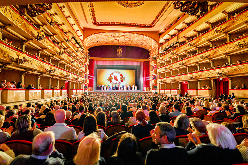 ![]() 圖10:二零二三年四月六日晚,神韻紐約藝術團在意大利⻉加莫市多尼採蒂劇院(Teatro Donizetti)的第二場演出爆滿。(大紀元) |