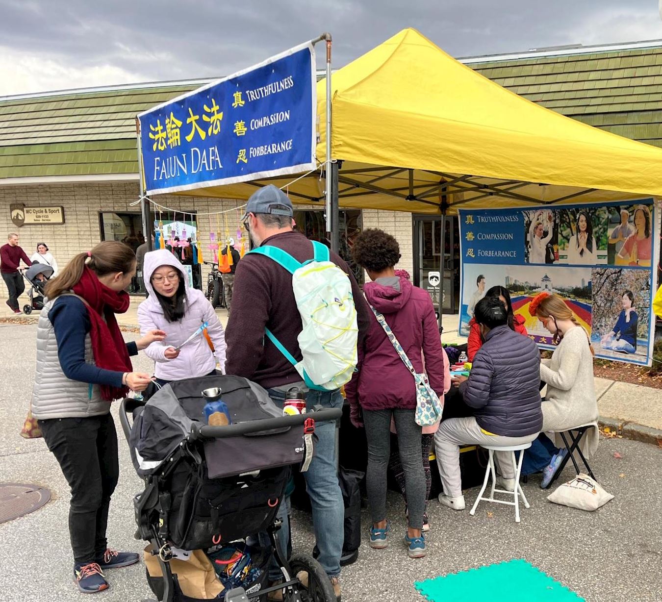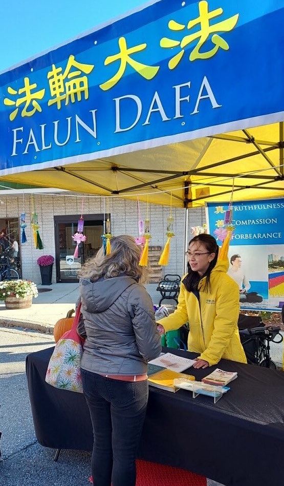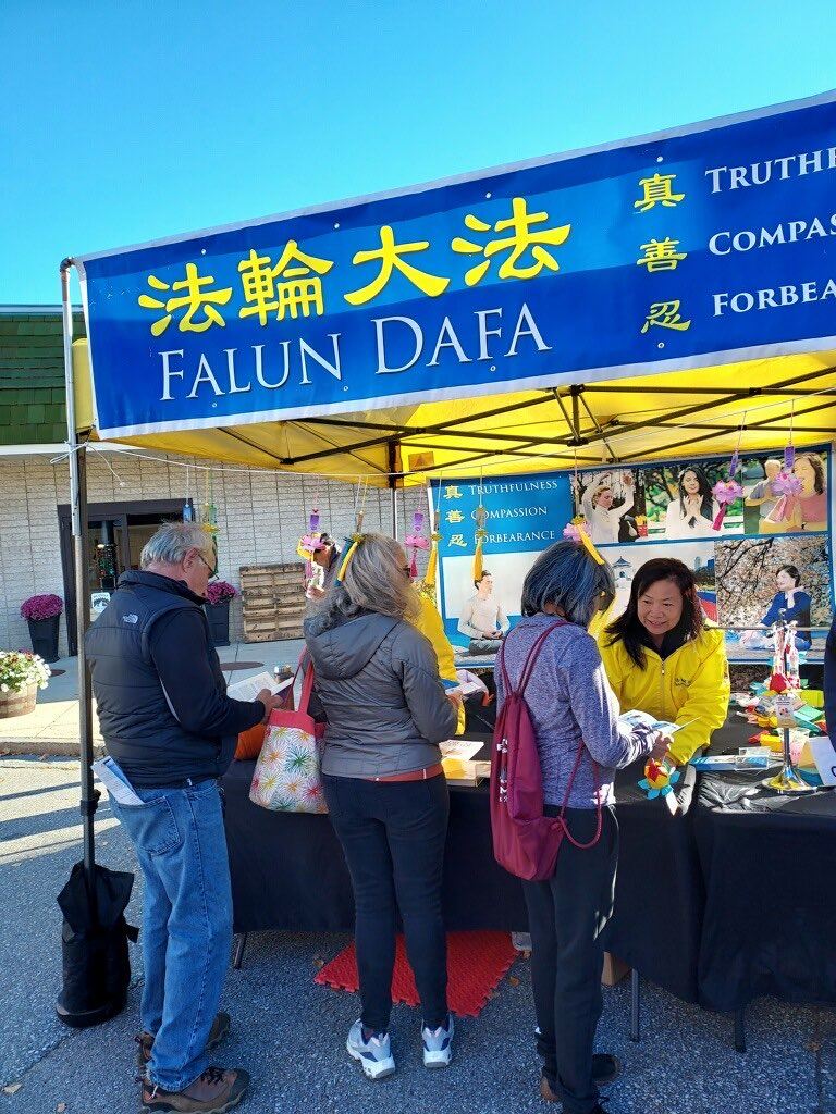 一個爸爸帶著女兒在來到法輪大法展位,學員們跟他介紹法輪功,他說他知道,他以前住過香港和上海。他表示,中共政府表面說人民有信仰自由,實質是沒有的, 那時他們在中國的生活很不愉快,教會活動受到限制。他說:「法輪功學員一直在揭露中共的迫害,讓人敬佩。」