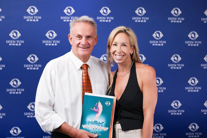 ![]() 圖9:艾美獎電視製作人、節目主持人丹﹒威利斯(Dan Willis)和太太琳達﹒威利斯觀賞演出後,都表示他們內心極為震撼 。(大紀元) |