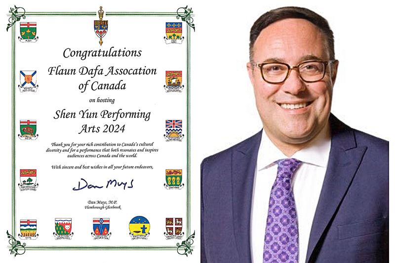 漢密爾頓選區國會議員丹﹒穆伊斯(Dan Muys)給神韻二零二四年度巡迴演出發來賀信,感謝神韻為加拿大文化多樣性做出的巨大貢獻,感謝神韻的演出鼓舞和激勵了加拿大及全世界的觀眾。並衷心祝願神韻演出圓滿成功!