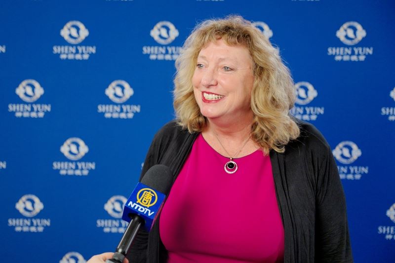 她表示整個演出「非常振奮人心」,「尤其是終場節目,當他們舉起(真、善、忍)橫幅,用慈悲、同情和忍耐去感化那些不友善的人,每當那橫幅再次出現時,都給人一種非常美好的感覺,真的非常美好。最後你會感到精神振奮。」