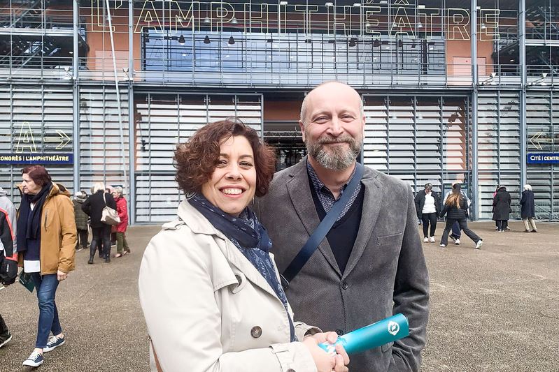 ![]() 圖10:四月十八日下午,來自比利時的醫生皮埃爾﹒維科(Pierre Vico)先生和太太瓦西麗。維科(Vassily Vico)在法國裏昂國際城圓形劇場觀看神韻演出。(大紀元) |