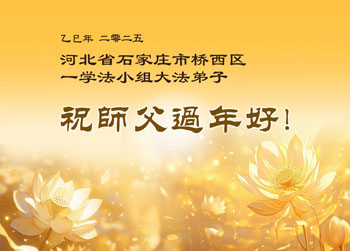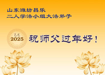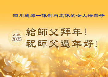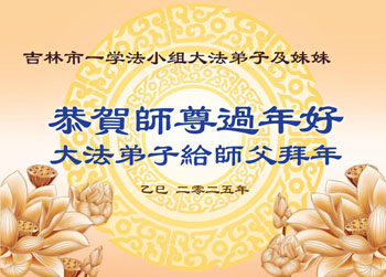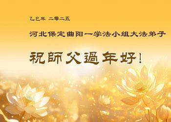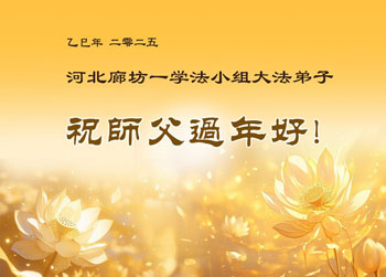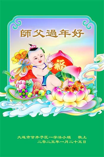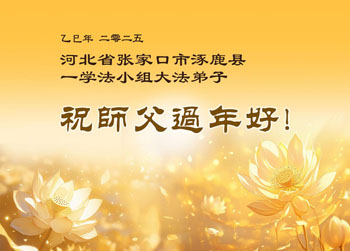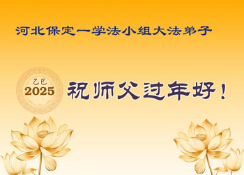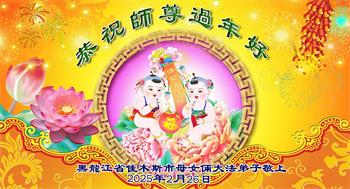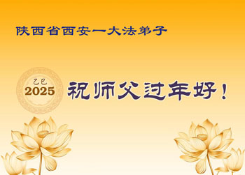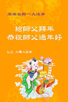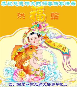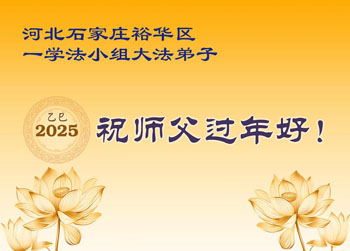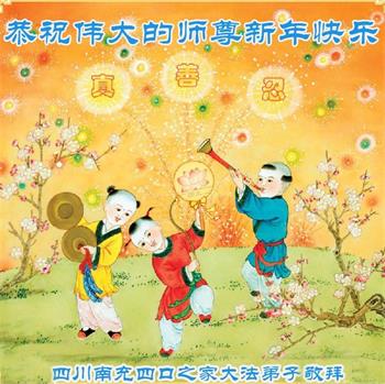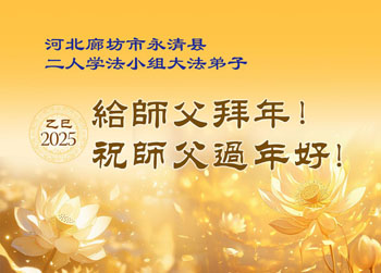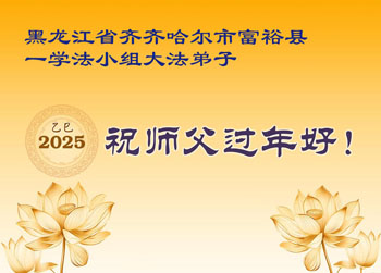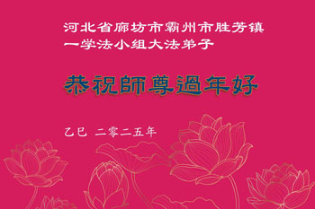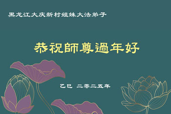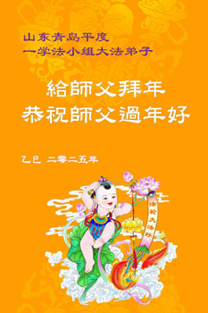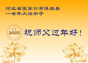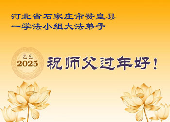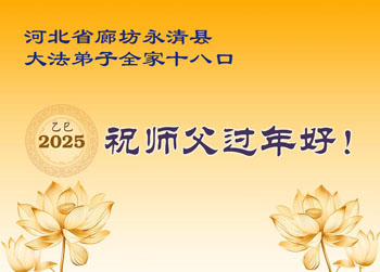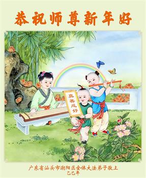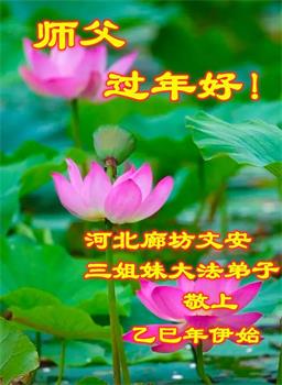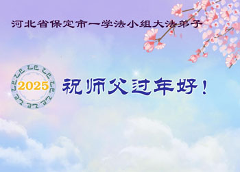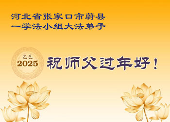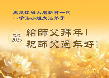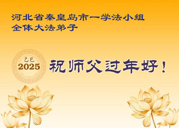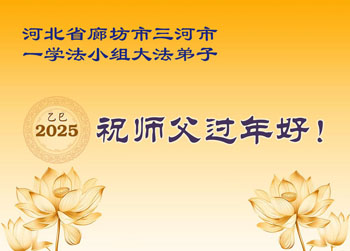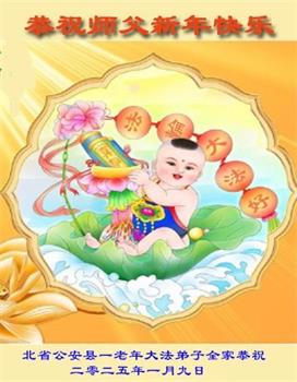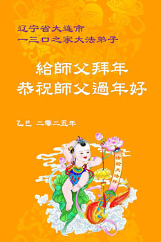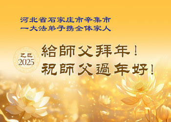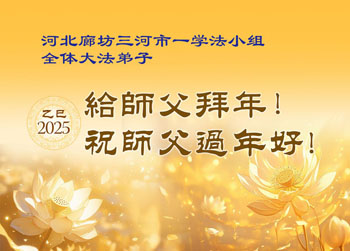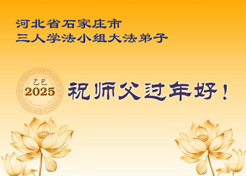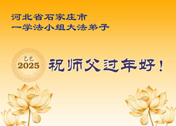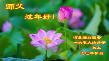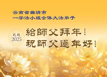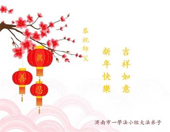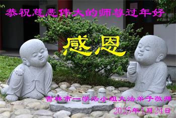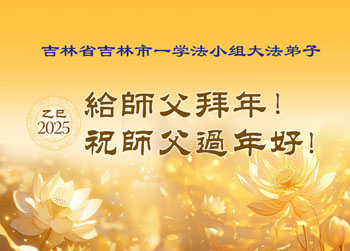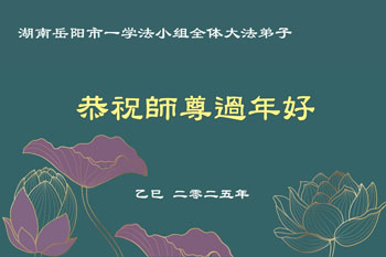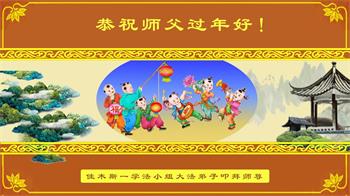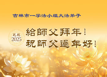 師父,我們是南通崇川一老年學法小組,在此叩首恭祝偉大的師父過年好!我們信師信法的心永遠不會變,我們就是要護師護法,學好法,做好三件事,跟師父回真正的家。再次恭祝師父過年好!