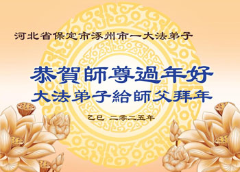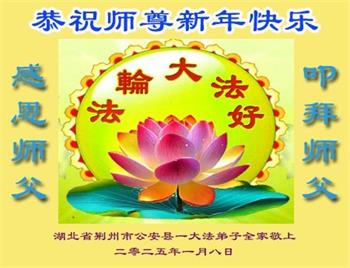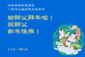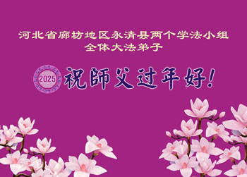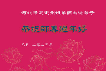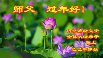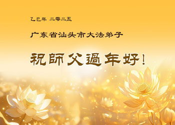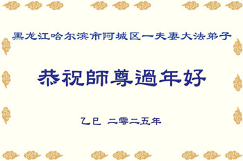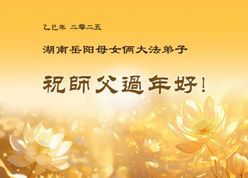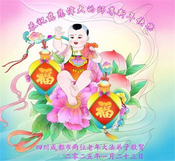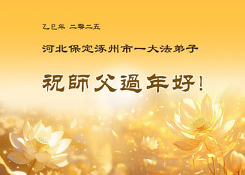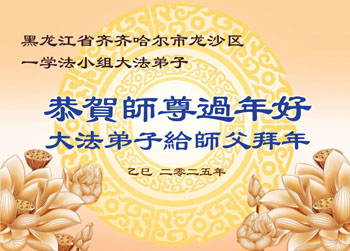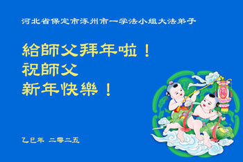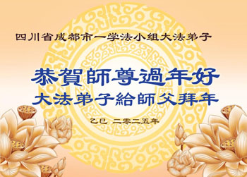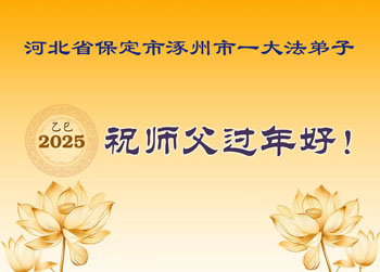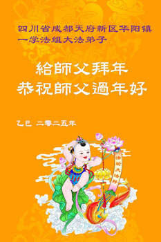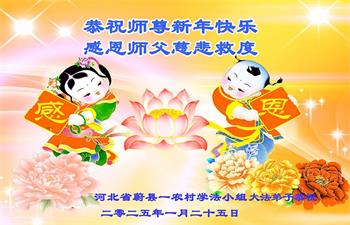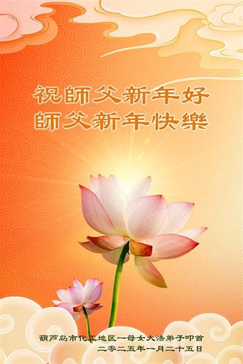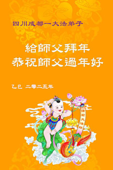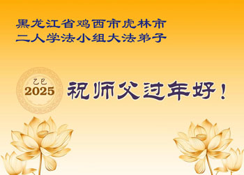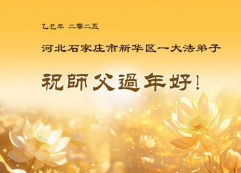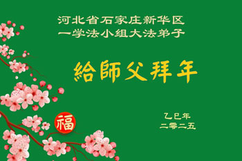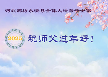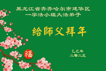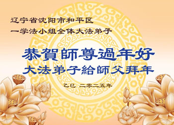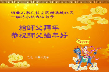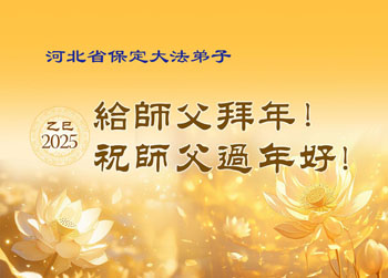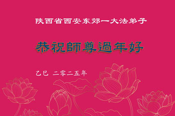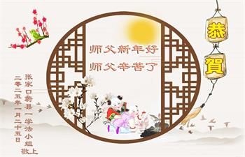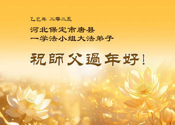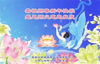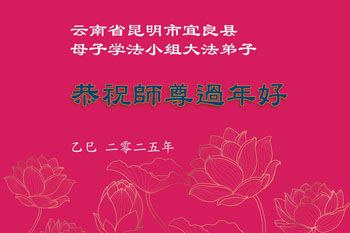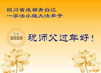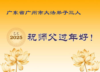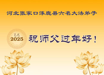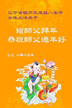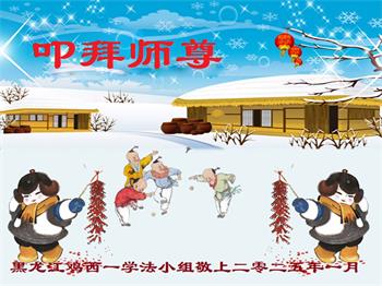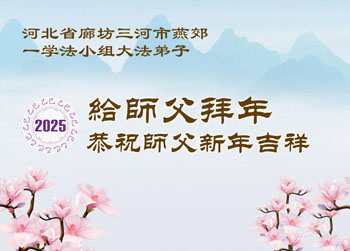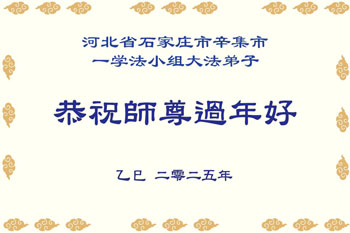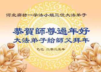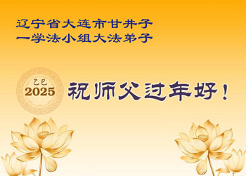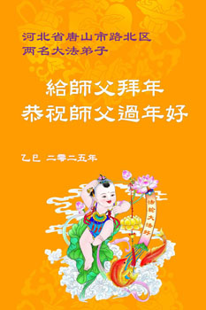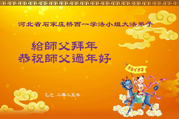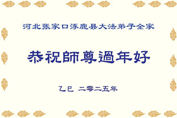 師父,我們是南通崇川一老年學法小組,在此叩首恭祝偉大的師父過年好!我們信師信法的心永遠不會變,我們就是要護師護法,學好法,做好三件事,跟師父回真正的家。再次恭祝師父過年好!